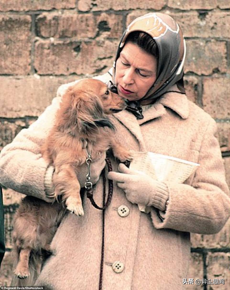 24.1976 年,在一场羽毛球比赛中,女王被拍到与她的一只宠物狗在一起。