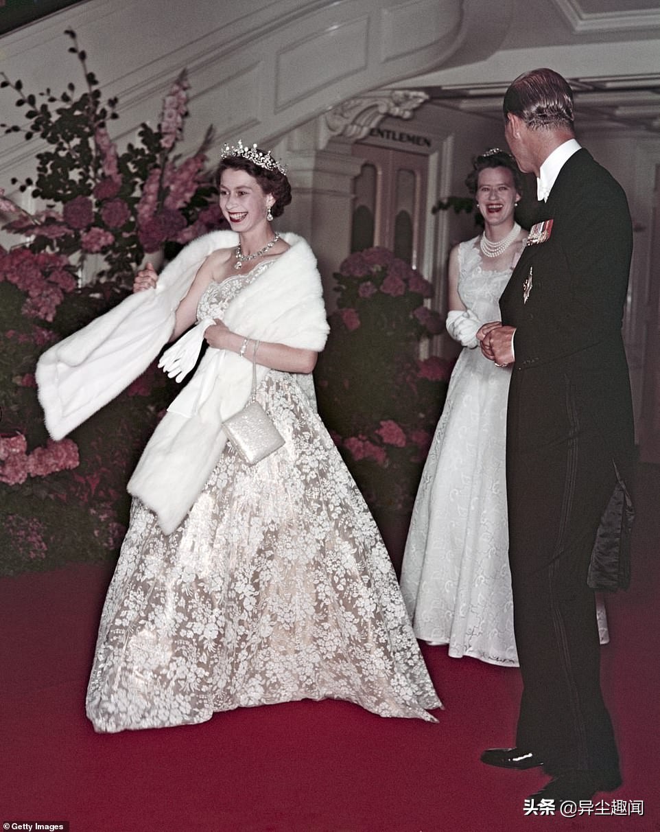 12.在 1954 年英联邦访问澳大利亚期间举行的宴会上,菲利普亲王的一个著名俏皮话似乎分散了女王和另一位客人的注意力,女王抓住了她掉落的披肩,同时闪烁着灿烂的笑容。