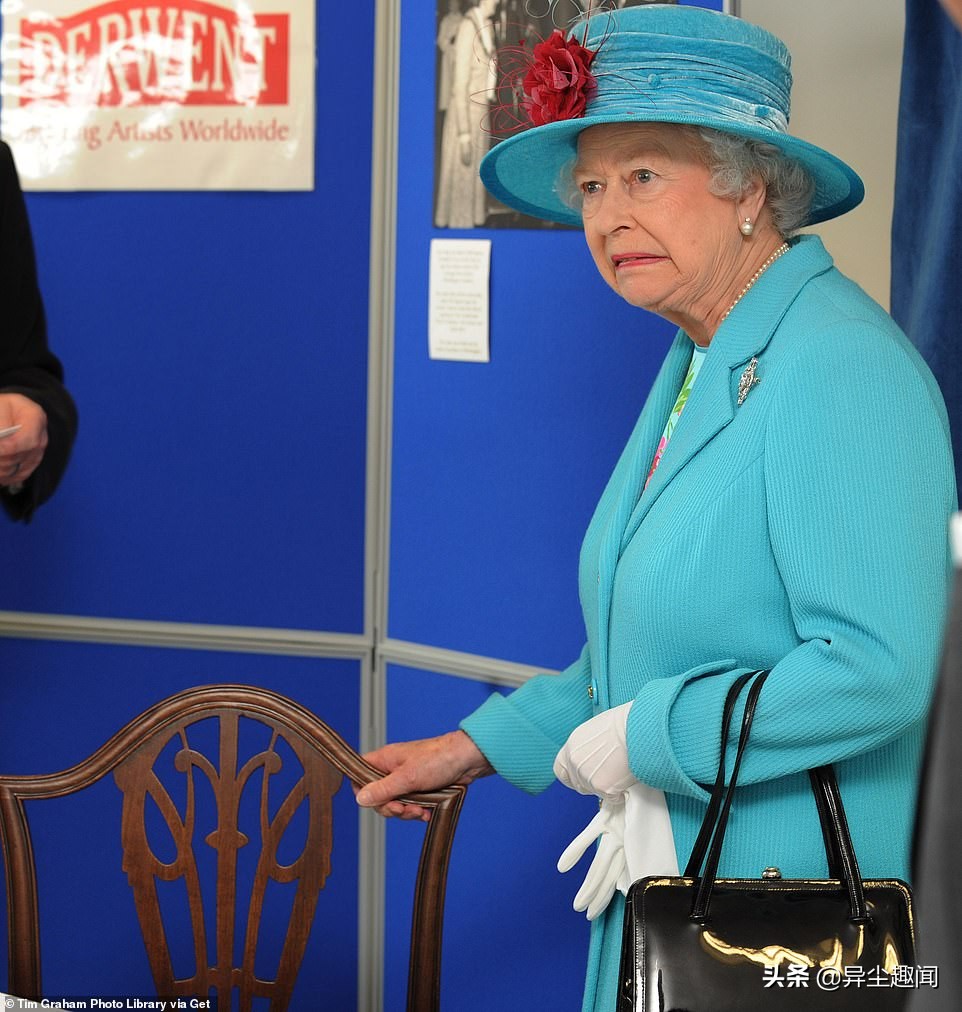 49. 伊丽莎白二世看起来很不高兴,因为她在 2008 年访问坎伯兰铅笔公司时坐在了 30 年前的椅子上。