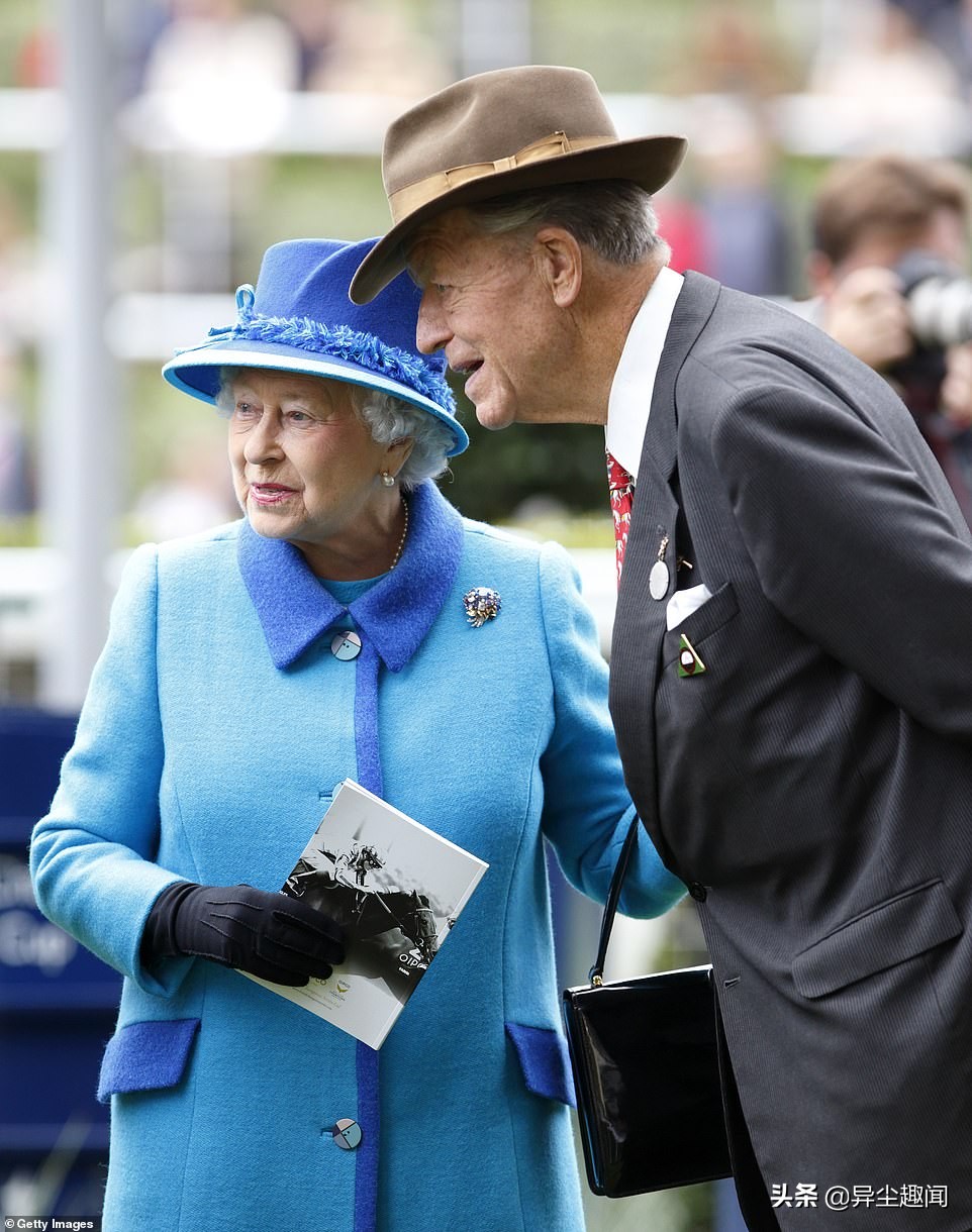 36.女王在英国冠军日与她的朋友迈克尔奥斯瓦尔德爵士交谈。