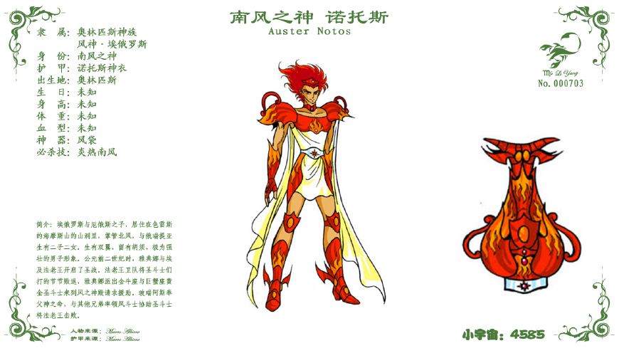 经过之前几篇文章对《圣斗士星矢》同人版的介绍,“风斗士”同人版在这期文章介绍完之后就全部完结,在此感谢百度贴吧@爱猫的总裁的大力支持。今天主要介绍“风斗士”的boss——“风神”以及其四位副主神。