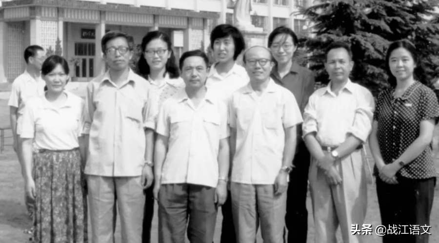 1970年代末,严家炎、孙玉石、谢冕、费振刚等与学生们在北大图书馆前合影(后排右一为戴锦华)