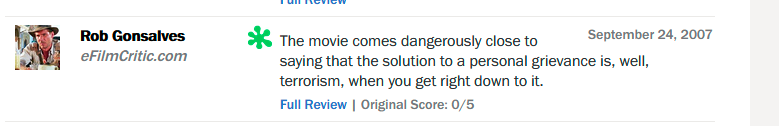 “这部电影以一种危险的方式告诉民众,解决个人问题,暴力是最直接的方法。”