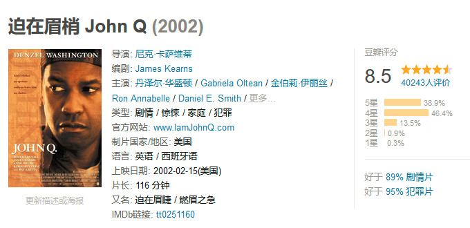 这部2002年上映的《迫在眉梢》,由黑人影星丹泽尔·华盛顿主演。