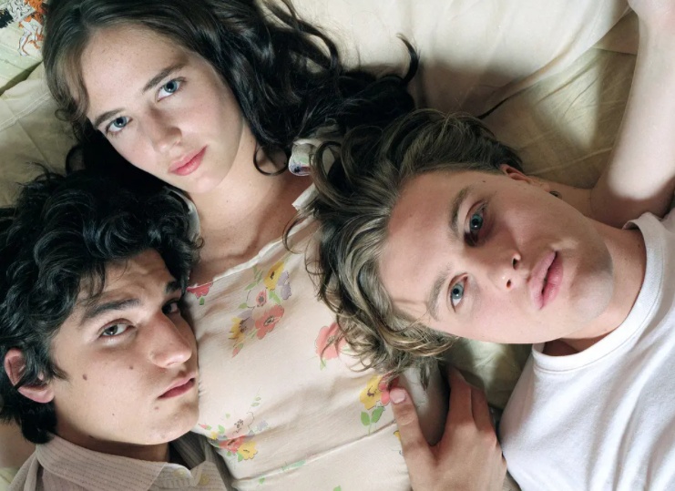 姐弟两个邀请这个美国朋友来自己家中居住,然而居住的结果就是这三个年轻人开始了没羞没臊的生活,整个过程中,美国人发现了姐弟两不伦恋的秘密,然而他并没有感觉到太过于稀奇,反倒是当作为一种利益的交换来加入其中。因为这段恋情一定意义上伤害的是法国姐弟两本身,对于美国人而言,并没有任何太多自己的利益被触及。