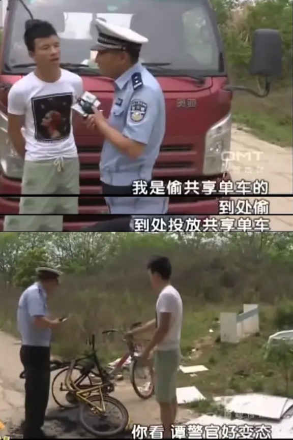 谭sir上前拦下,一边找骑车的人要驾驶证,一边询问坐在上面的小伙子为什么坐在上面,难道不怕掉下来。