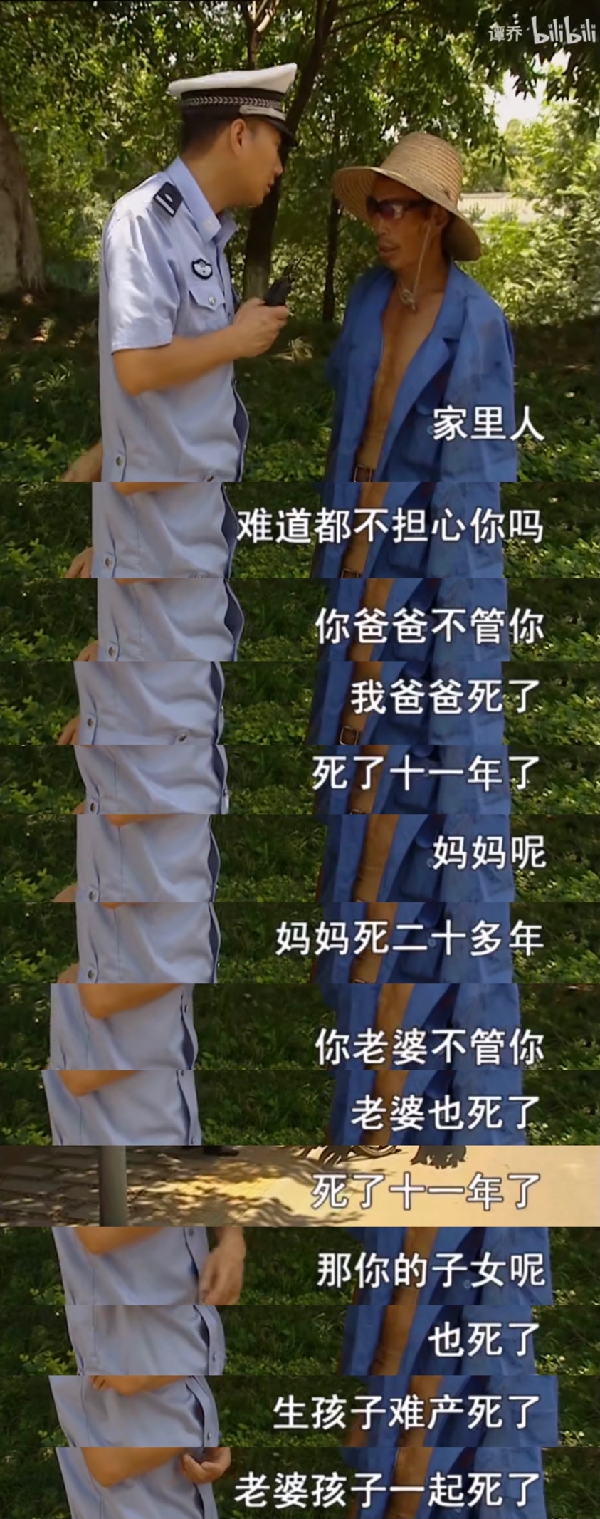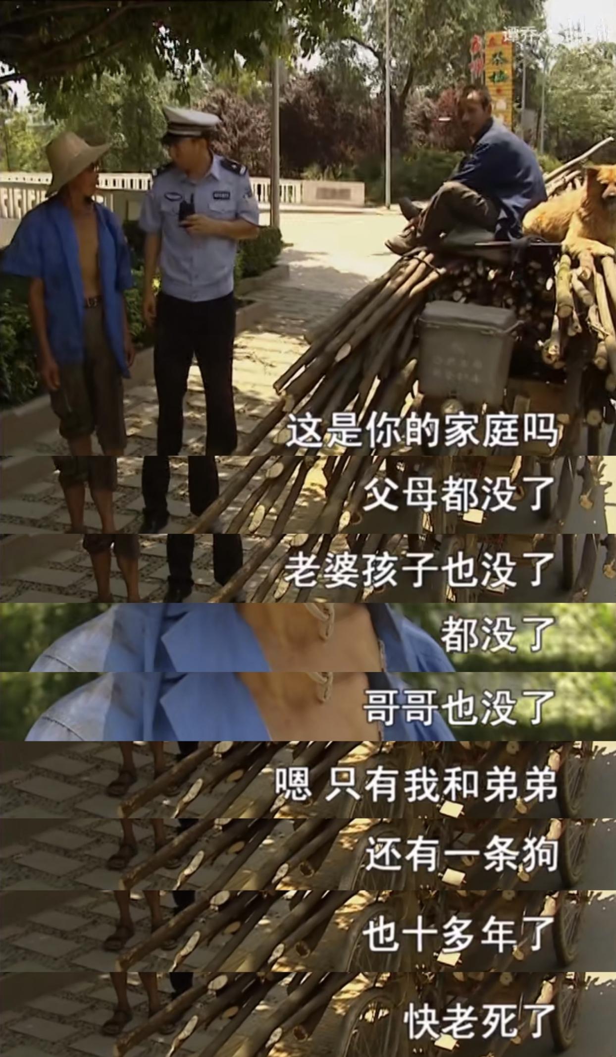 可是在谭sir和他聊天,劝导他注意交通安全的过程中,却了解到这位看着很乐观的大爷,彼时爸爸已经去世十一年,妈妈去世二十多年,老婆在生孩子的时候难产,和孩子一同去世,哥哥也去世了十八年。