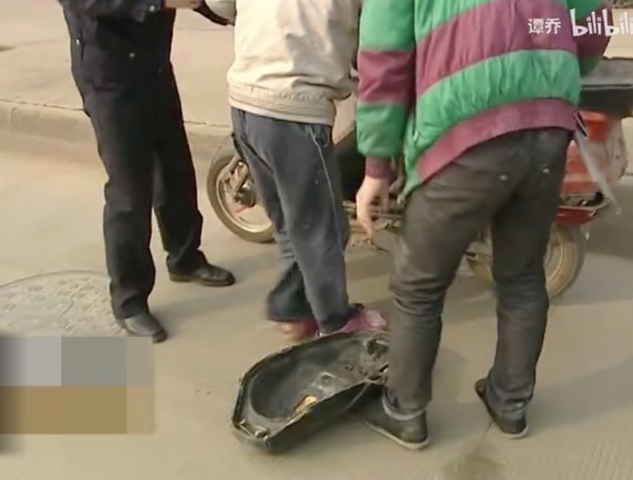 电动车载人只是其中一个问题,师徒二人所使用车辆的破损程度也是一大安全隐患。