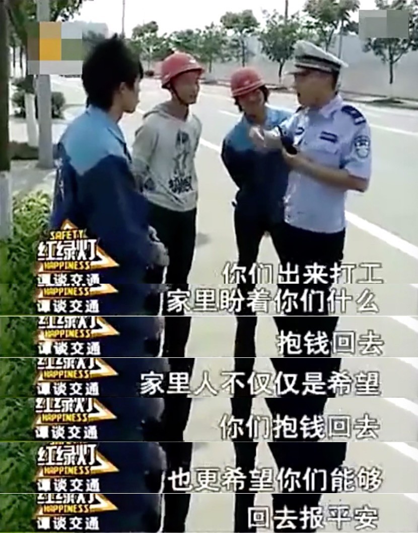 我们看同乘电瓶车的三名农民工,当谭sir问“你们出来打工,家里人盼着你们什么?”本想引导他们重视安全问题时,这三名外地小伙齐刷刷回答:“抱钱回去。”弹幕里会飘过“泪目”的字样。