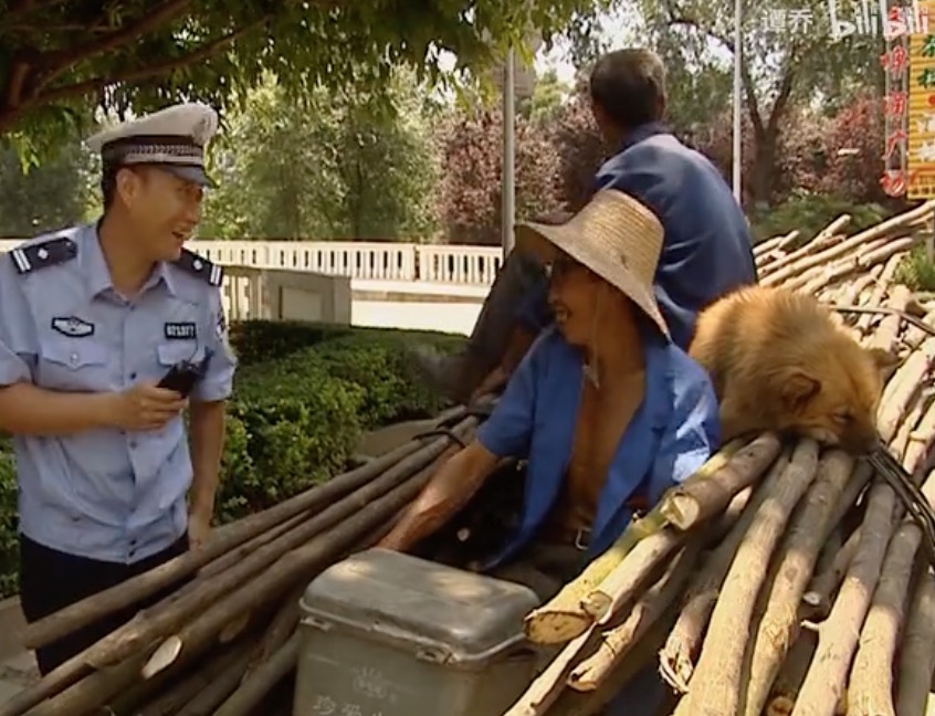 “福贵”大爷被谭sir发现的那天,蹬着一辆满是树枝柴禾的三轮车,车上载着他的弟弟,还有一只老狗。