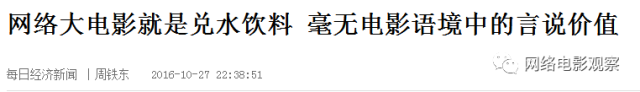 所谓树大招风,一跃而起的网大似乎总是不受人待见,业内例如:网大市场已然步入末路!网大不过是一个巨大的资本偏激!这样的偏激言论似乎一直不绝于耳,近日又有一篇名为《网络大电影就是兑水饮料 毫无电影语境中的言说价值》的文章在业内传播,据悉此篇有失偏颇的恶性批评文,来自行业资深人士周铁东。
