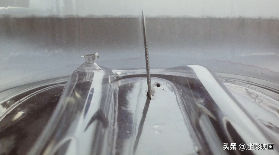 凶手在水下悄悄靠近了船底,然后掏出潜水刀,将锐利的刀锋对准毫不知情的女郎。