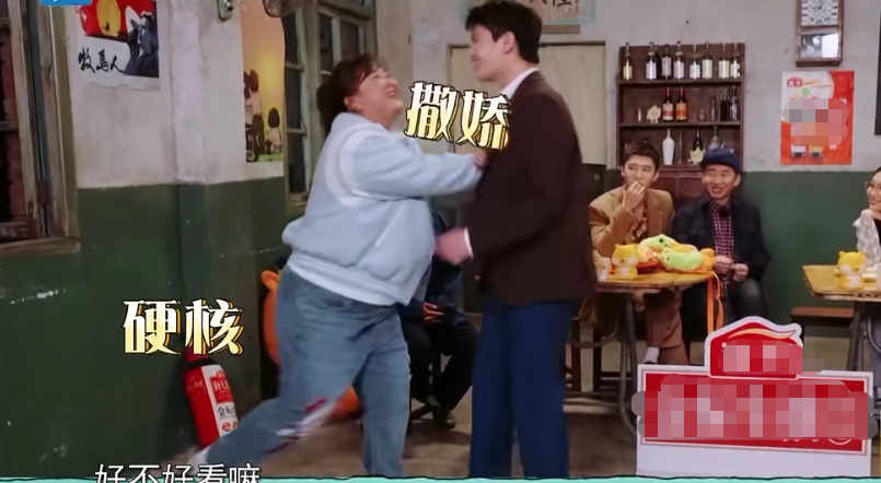 再说我们可爱女孩贾玲,有一期和杨洋饰演甜宠剧《荣耀》里的情侣,贾玲直接用东北话撒娇,甚至还连锤杨洋三次胸口,把对方逼得节节后退。