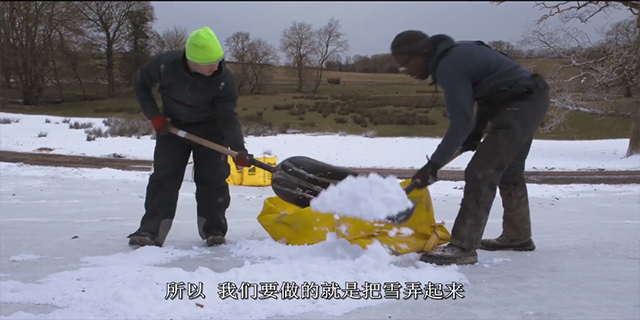 还有很重要的地面,他们都要先把地面整理成成适合人造雪洒落的理想状态后,才能开始真正的工作。