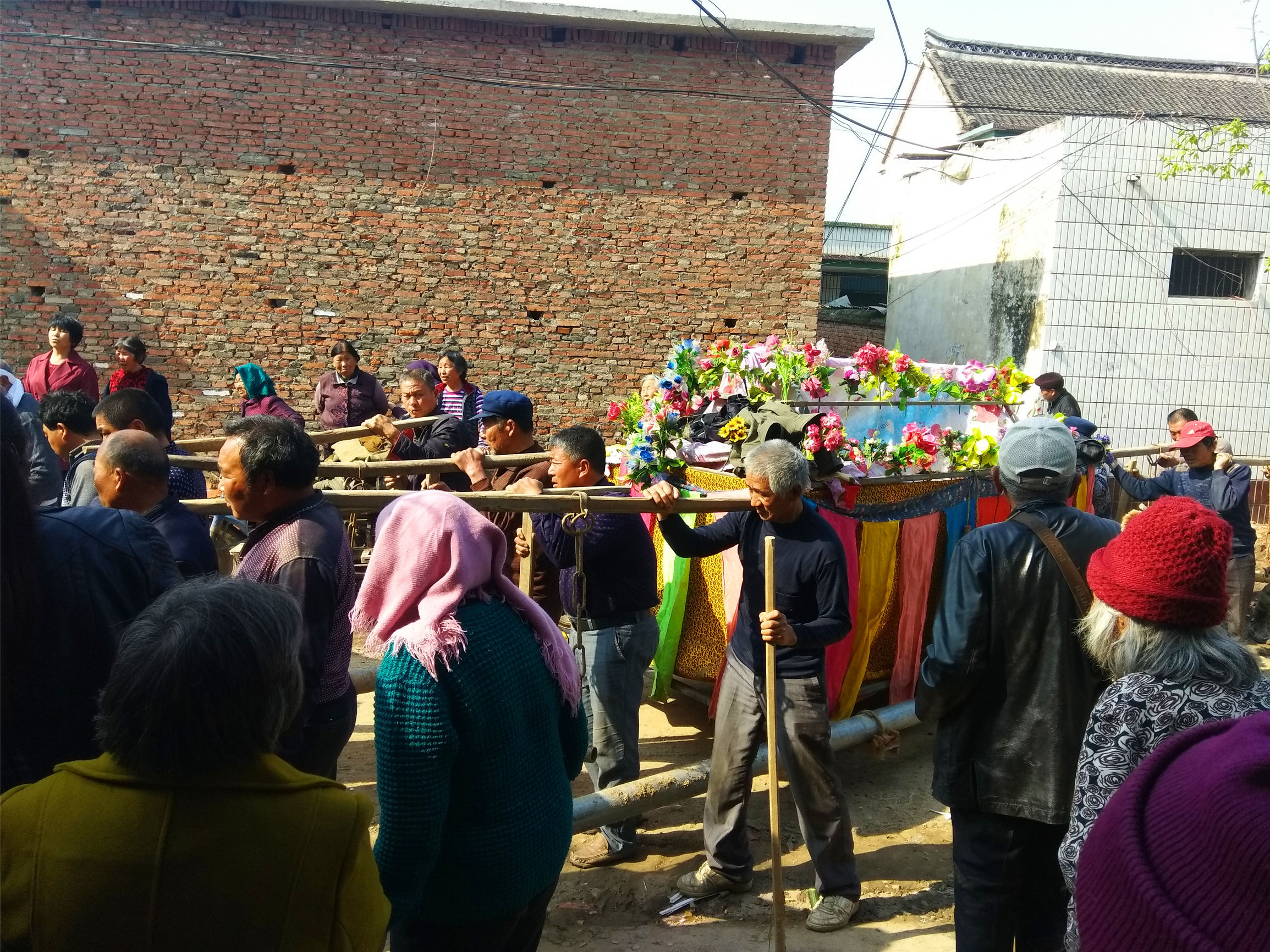 出殡的队伍也是十分感人的,农村人齐心协力,众人抬棺,好让逝者入土为安。