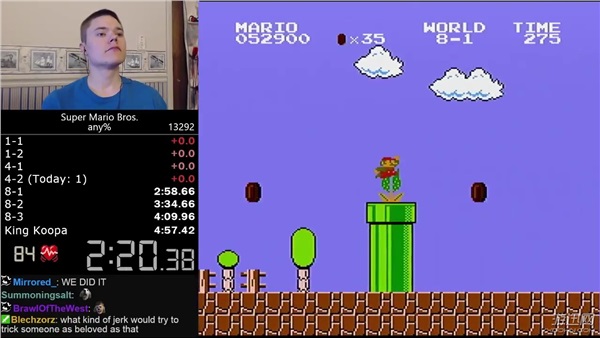《超级玛丽》绝对是许多玩家童年最经典的fc游戏,相信多数玩家都曾经有过在“小霸王”上玩这款游戏的经历。时至今日,这款游戏依旧火爆,不断有新人挑战着“最快速通关”。这不日前,一位名叫darbian的主播创造了一个新记录:4分57秒260!