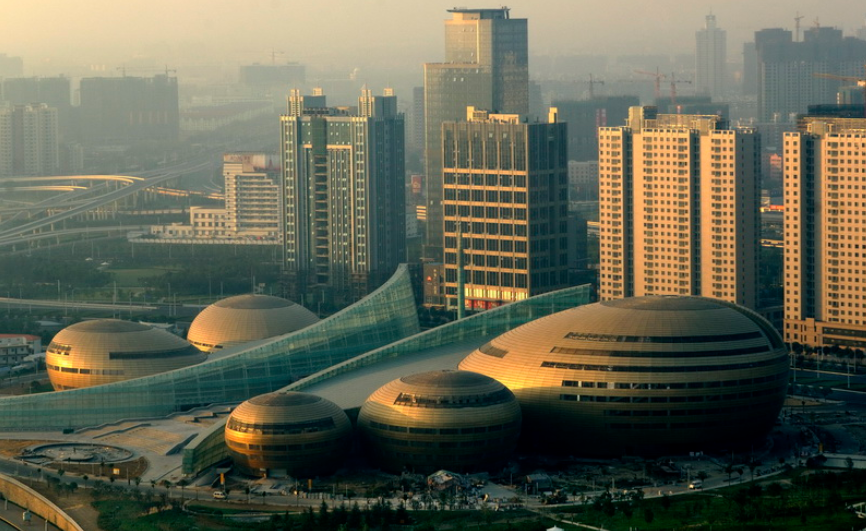 在“唐朝少女”们起舞的背景中,出现了很多郑州的地标建筑,其中比较显眼的就包括这座河南艺术中心。大剧院、音乐厅、小剧场、美术馆、文化馆五个椭圆形的主场馆组成了河南艺术中心,但千万别以为这只是5颗“土豪金蛋”,它的设计灵感来源于出土于河南殷墟的6500年前古代乐器陶埙。此外,历史课本上不会错过的“贾湖骨笛”、“排箫”等也都化身成设计师的灵感,需要你亲临现场感受他们究竟是哪一部分。
