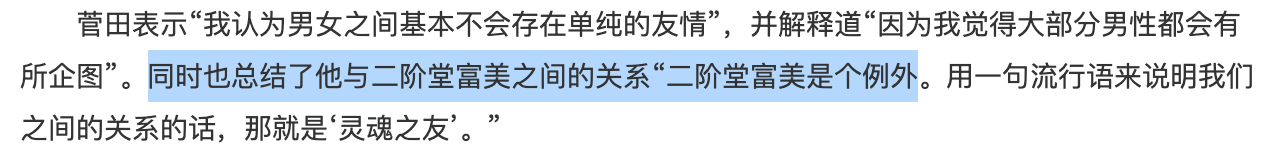 但自己和二阶堂富美“是个例外”“是灵魂之友”(狗头)