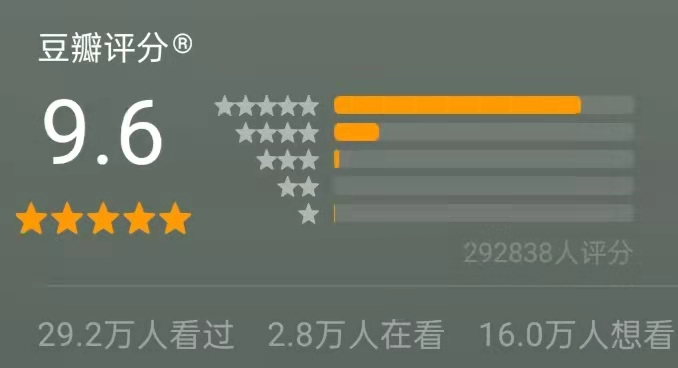 豆瓣超过29w人,打出9.6的高分。
