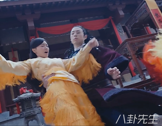 男主罗晋一出场,正在吃面的他轻轻抬下手臂,就能让唐嫣弹到离地面好几米的高度▼