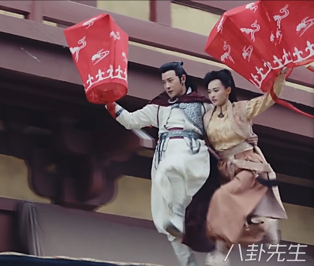 然后两人一起在空中滑翔(当然,戏里的设定是轻功)▼