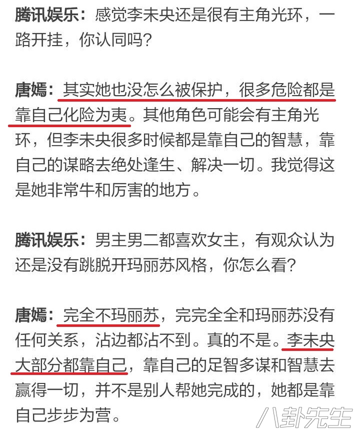 可笑的是,明明什么都离不开罗晋,唐嫣在接受访问时非要否认女主没有主角光环、剧情也不玛丽苏,什么都靠自己▼
