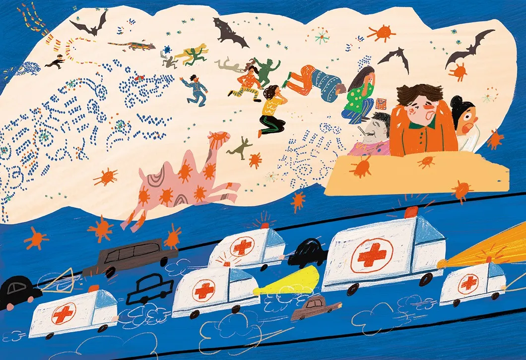前几年,我们家族中的冠状病毒很厉害,先藏在蝙蝠、果子狸、骆驼这些动物的身体里,然后找到机会,成功地进攻了人类,