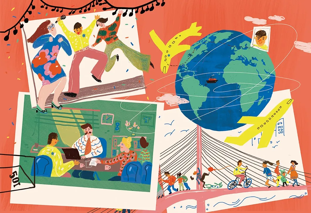 和家人、朋友们一起吃饭……还坐飞机去了很远的地方。