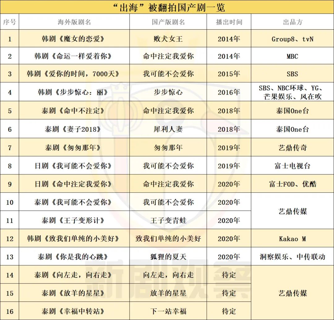 国产剧“出海”被翻拍的历史由来已久,但真正按照商业模式运营并形成常态,还是从2014年开始。