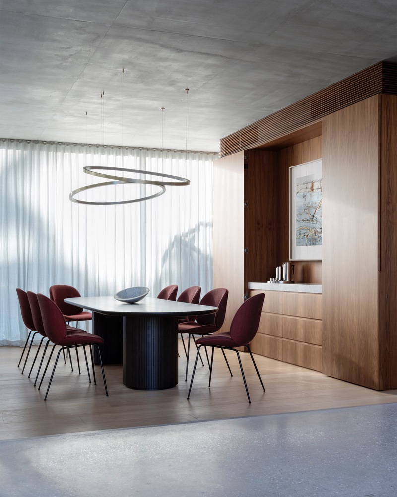 这座房子要求内部空间和各种外部体验之间无缝流动;因此,丛林火灾分区需要大量的细节设计,以将防火幕与建筑相结合。在可能的情况下,还使用了 blackbutt 木材作为一种更具美感的丛林防火等级的遮蔽和玻璃解决方案。与自然环境有着内在联系的房子的概念已经体现在它的居住方式上——门窗很少关闭,内外之间的界限被抹去。然而,即使建筑物和场地之间具有这种程度的透明度,房屋仍保留着温暖和保护感。