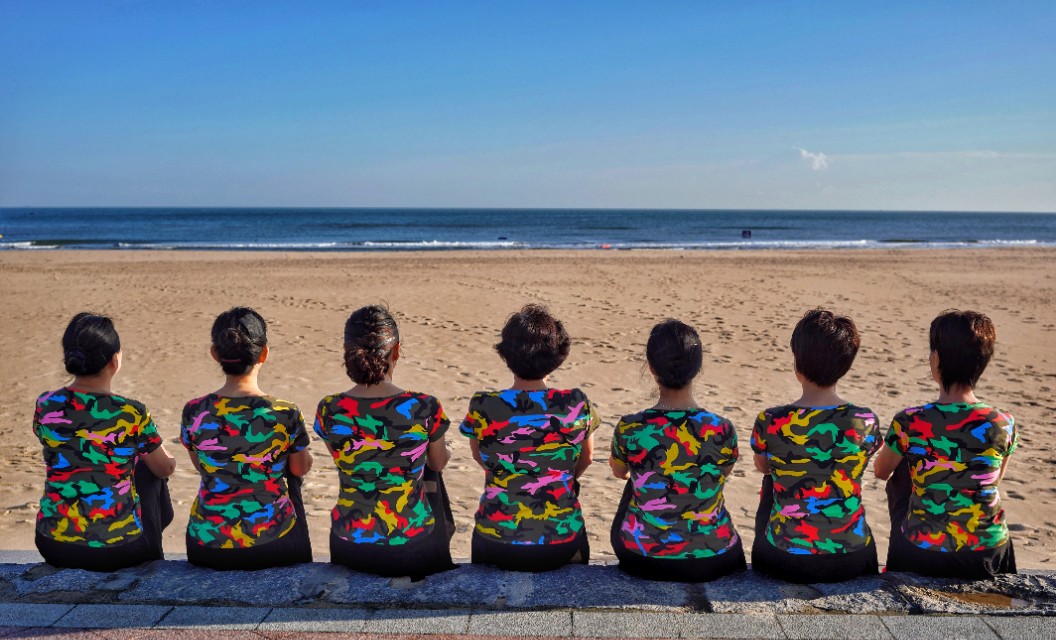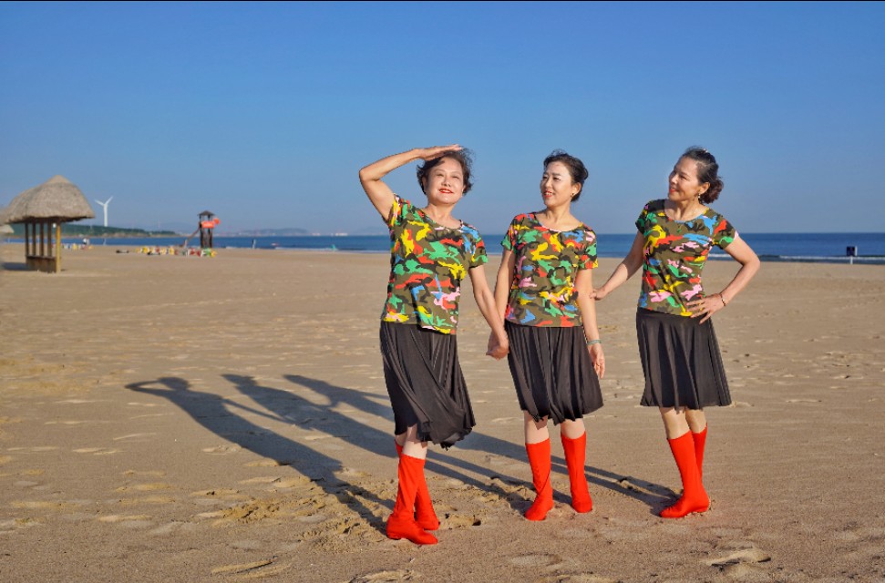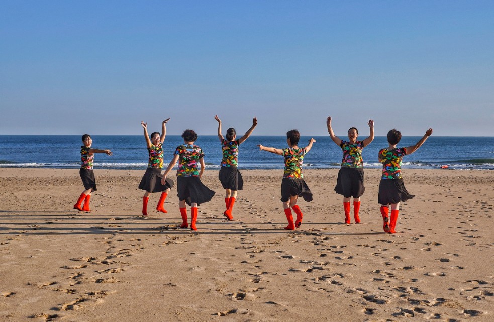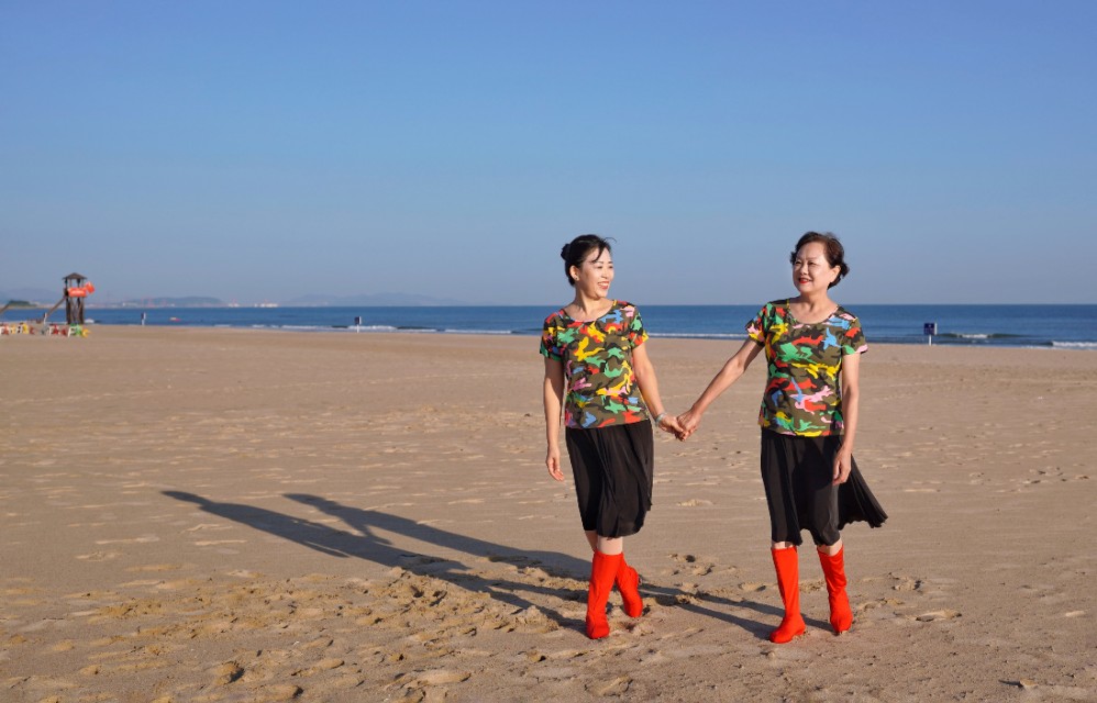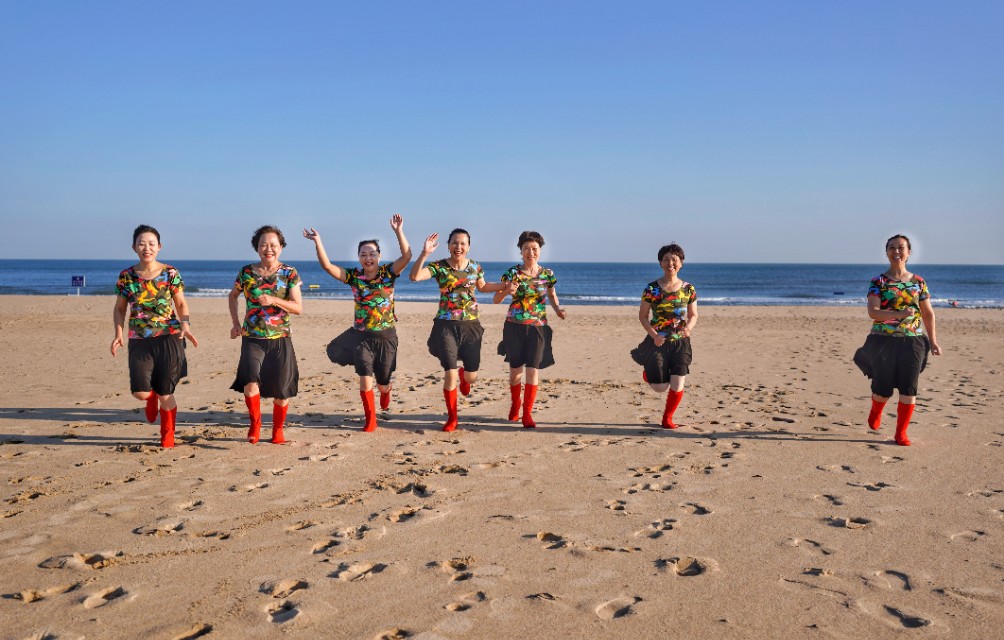 在祖国大陆的最东部威海市荣成市的那香海文旅度假小镇,有这样七位快乐的姐姐,她们分别来自北京、上海、武汉、山东东营等地,年龄最大的69岁,最小的也有58岁,平均年龄达63岁。是什么让来自五湖四海的她们,在不同口音、不同生活习惯的背景下,走到了一起?那就是共同的兴趣:大海与舞蹈。
