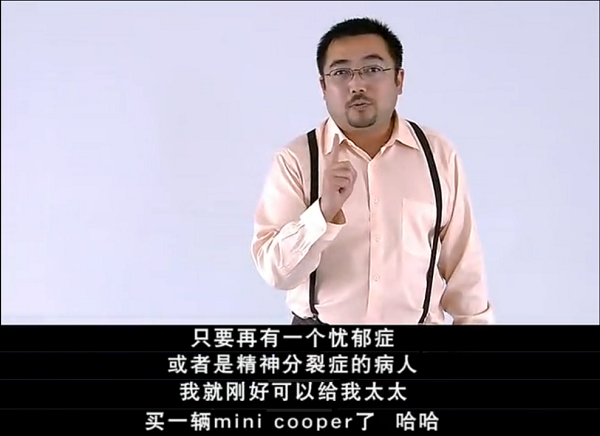 心理医生在招揽生意的同时,内心幻想着,再接几单比较严重的单子,抑郁症或精神分裂症,自己就能发大财,买跑车了。