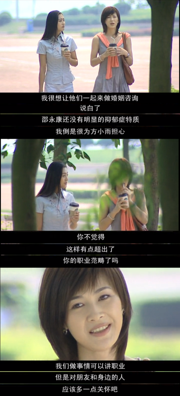 再补充一点,剧中的心理咨询师一会提到“抑郁病”,一会提到“忧郁症”,作为心理咨询师,在向来访者阐述、解释的时候,要应力求严谨、专业。