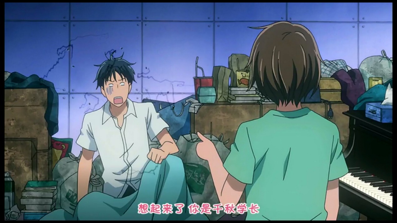 换句话说,千秋不是先见到野田妹,而是先听到野田妹的琴声,在深夜被前女友彩子无情拒绝后醉倒在家门口,隔壁房间的野田妹看到千秋就好心收留进自己的垃圾窝。半梦半醒中,千秋又听到了野田妹的琴声,一醒来才真正看到野田妹。就这样,少女漫画中的boy meets girls桥段出现了,作为观众的我难免幻想这孤男寡女共处一室会做出什么,结果看到野田妹房间的恐怖景象后,我沉默了,野田妹的房间绝对是世界上最恐怖的地方之一,千秋第一眼见到也会这么想。