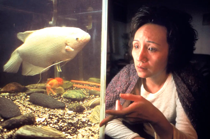 还是蔡明亮的电影《爱情万岁》,这部电影的主角,依然是蔡明亮的御用李康生、陈昭荣和杨贵媚,陆弈静的角色戏份不多,是一个侍应生