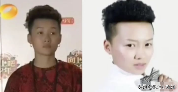以前的刘雨昕皮肤黝黑,带个耳钉,土气中带着浓浓的男性特征,没有一丝女性气息,非常的铁t。