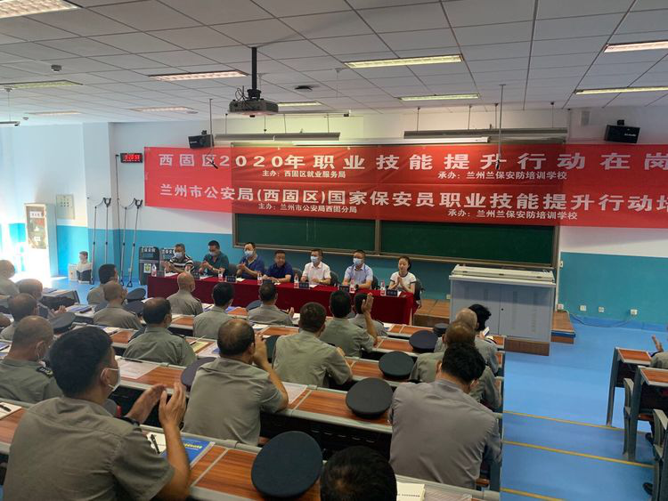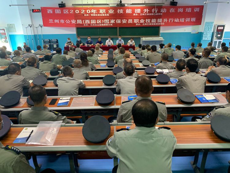8月25日,兰州市西固区国家保安员在岗培训班在兰州石化职业技术学院举行开班仪式,开班仪式现场有西固区就业服务局负责人、西固公安分局分管负责人和兰州市保安服务总公司总经理、兰州兰保安防培训学校负责人以及广大参训保安员等共计120余人到场参加。