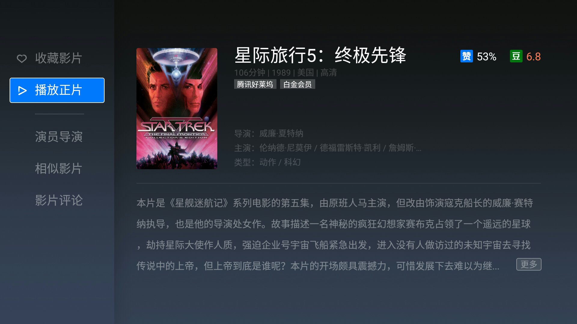 4.《星际旅行5:终极先锋》(豆瓣评分6.8)