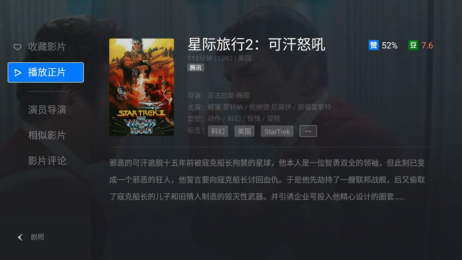 2.《星际旅行2:可汗怒吼》(豆瓣评分7.6)