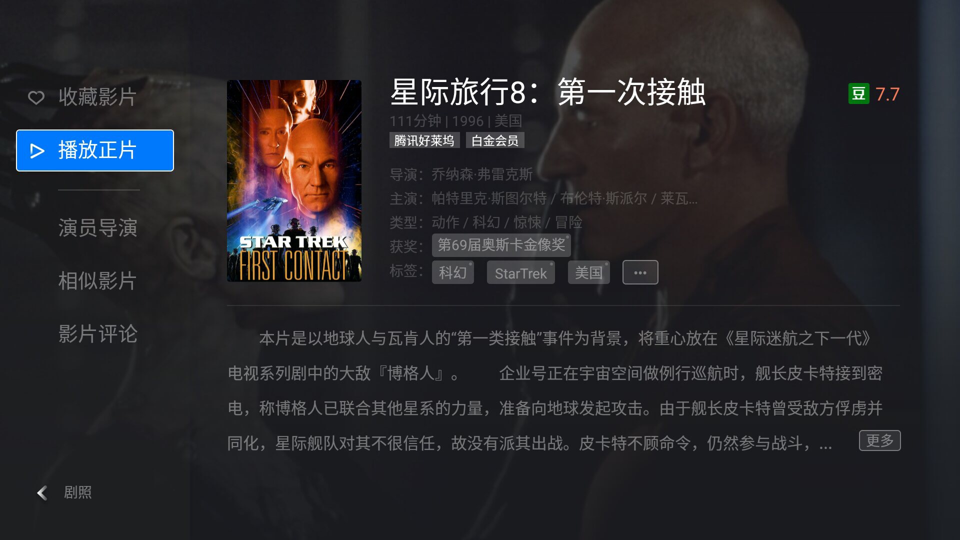 7.《星际旅行8:第一次接触》(豆瓣评分7.7)