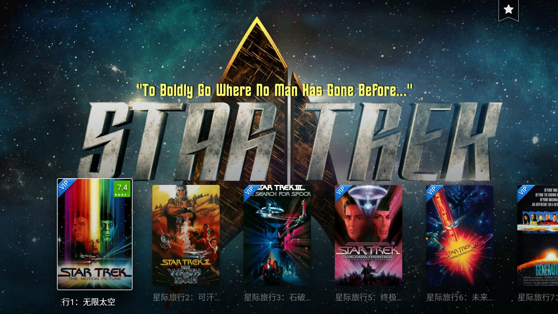 star trek《星际迷航》,又译作《星际旅行》,是由美国派拉蒙影视制作的科幻影视系列,由6部电视剧、1部动画片、13部电影组成。一个系列电影,连续拍了13部,横跨50年并且部部都是经典。从第一部开始,你会发现,之后的每一部都存在联系但却相对独立,片头的星辰大海、企业号美人、以及经典的旁白都是这部电影构筑的庞大体系中令人印象深刻并且无法忘怀的一部分。《星际迷航》与很多科幻类型电影更大的不同是,st系列更多的是在探讨人性、社会性等贴近生活层面的东西,更像是对于未来乌托邦的展望。它充满幻想、浪漫主义、反歧视、反战等现代普世价值观,这在当时是最难能可贵的,这也是很多星际迷一直追随这部经典系列电影的原因。
