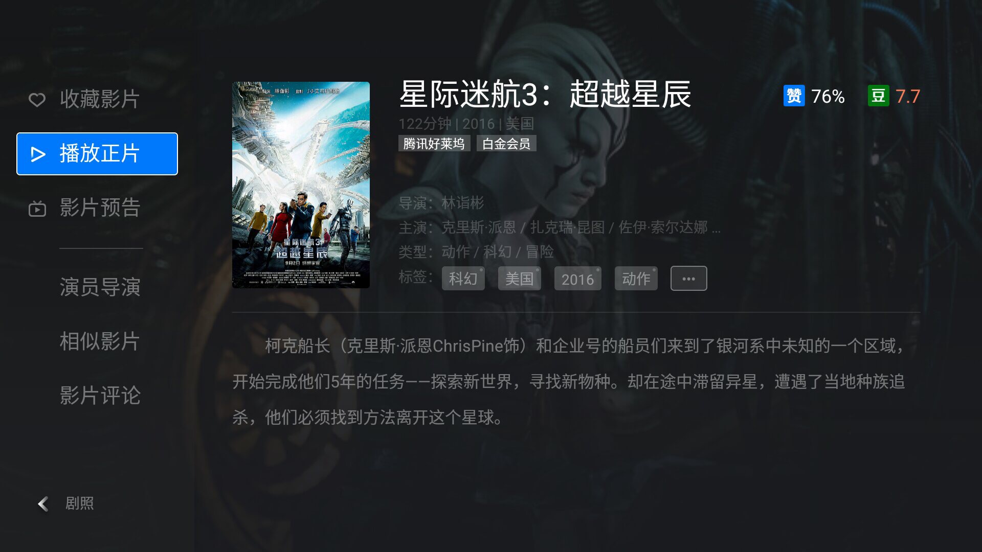 1. 《星际旅行1:无限太空》(豆瓣评分7.4)