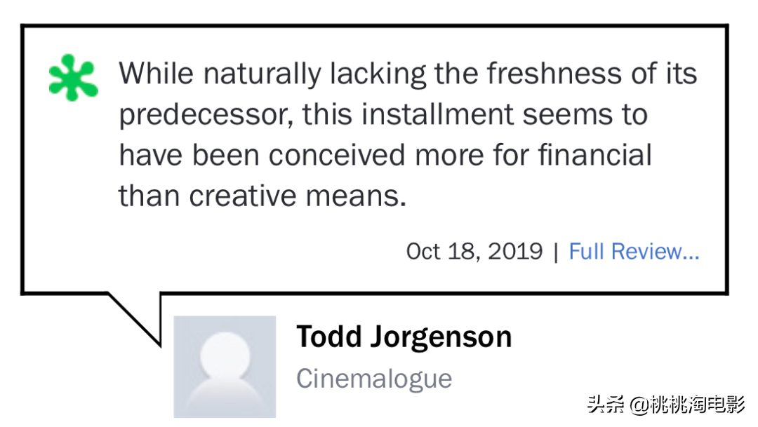 “续集全无前作的新鲜感,整个项目似乎并不是因为创意,而纯粹为了圈钱。”