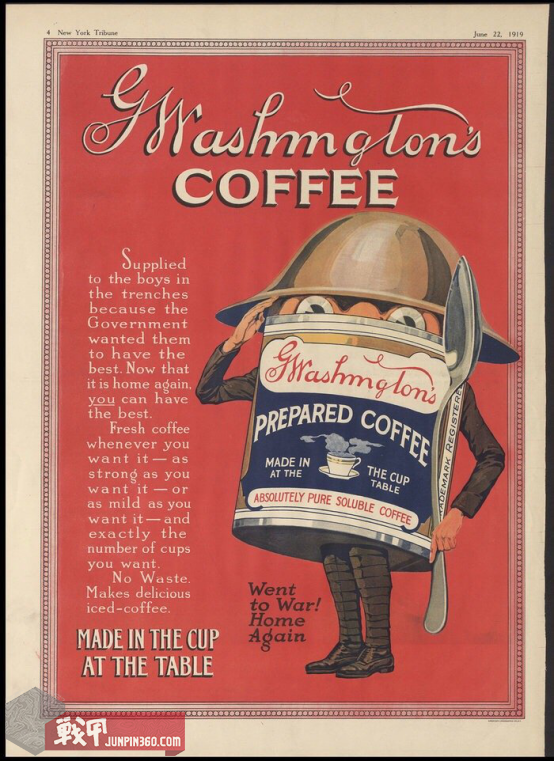 “华盛顿”牌即溶咖啡广告,第一次世界大战时期。