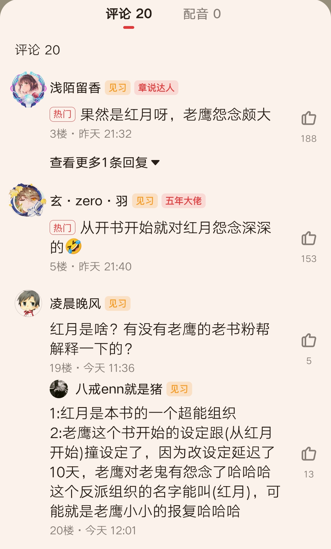 另外小说的反派之一也已经明确了,名为“红月”,是一个由超能人员组成的组织。而这个名字也让大家瞬间就联想到了黑山老鬼的大火作品《从红月开始》。