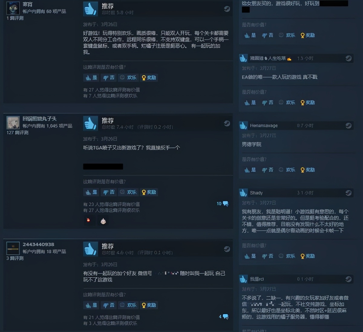 在评论界面,玩家一水的对游戏内容赞不绝口,唯一被吐槽的就是服务器问题,毕竟“橘子”服务器在联机方面的效能,懂得都懂。此外,也有不少玩家表示,却一个人开黑,在线等,挺急的。