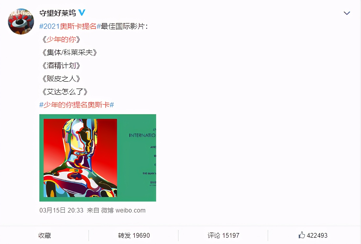 近日,奥斯卡金像奖公开了最佳国际电影入围名单,国产片《少年的你》喜获提名,这也是华语电影时隔18年再次获得奥斯卡提名。